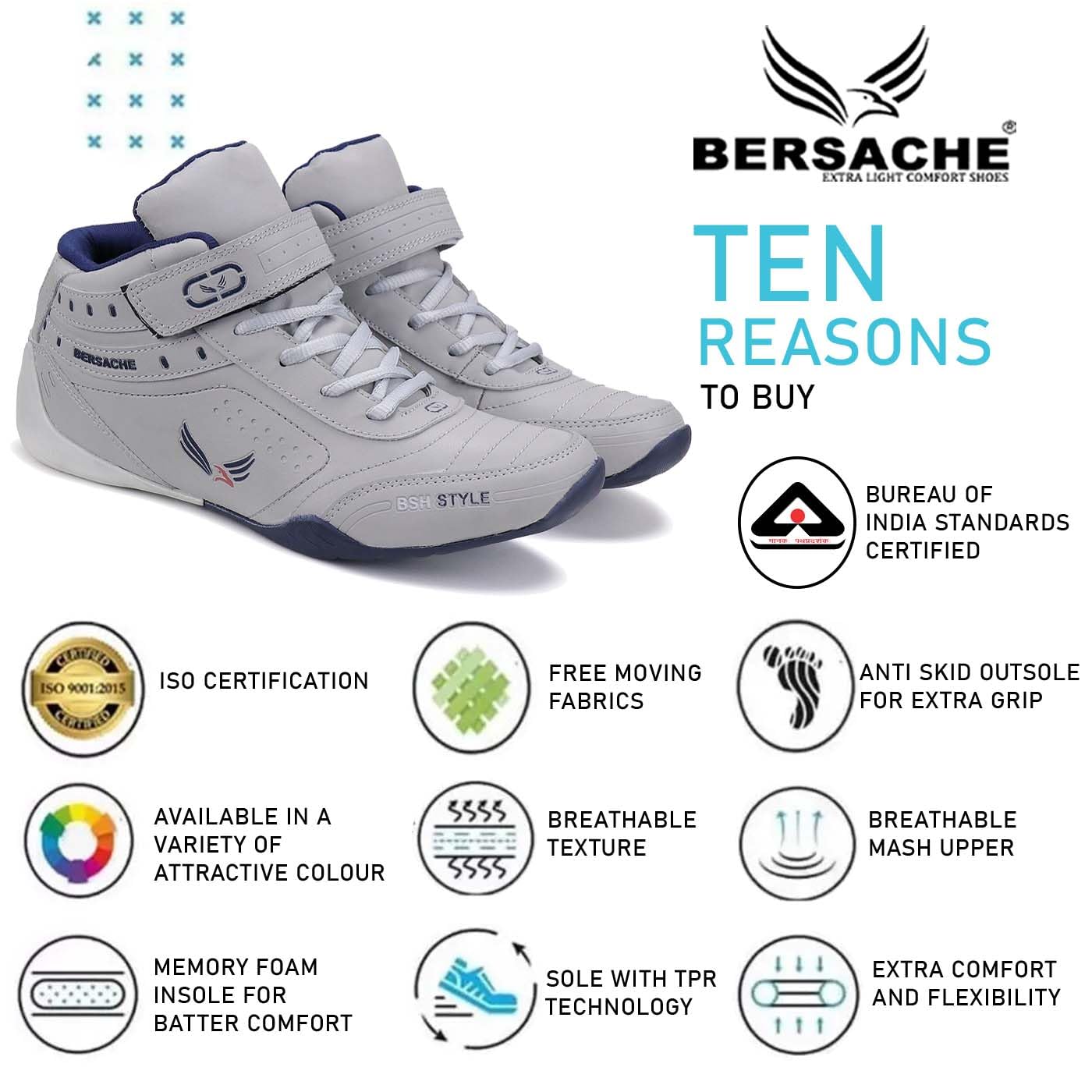 Men’s “SPORTS SHOES” from the newest Bersache collection are presented. VERY DURABLE MATERIAL, LIGHTWEIGHT AND COMFORTABLE made of a substance that is incredibly durable. Excellent Sole for Enhanced Flexibility and Bounce when Moving This shoe is quite comfortable, sturdy, and slip-resistant. a wonderful option for daily wear footwear. Every stride appears airy and light thanks to distinctive style and durable materials. With this fashionable pair of sports shoes from the Bersache brand, up your sense of style. Any pair of jeans will look excellent with it. Ideal for all occasions and physical pursuits, including partying, running, bicycling, hiking, the gym, and jogging. Bersache’s athletic and everyday footwear is ideal. A trendy collection of footwear that goes with your current look Make your casual attire unique. Put on these Bersache shoes to look elegant. We offer the most fashionable and comfortable shoes, sandals, and slippers available so that customers can feel and look their best. The truest representation of comfort and style is a smile, so when we see people grinning, we know we’ve done our job.