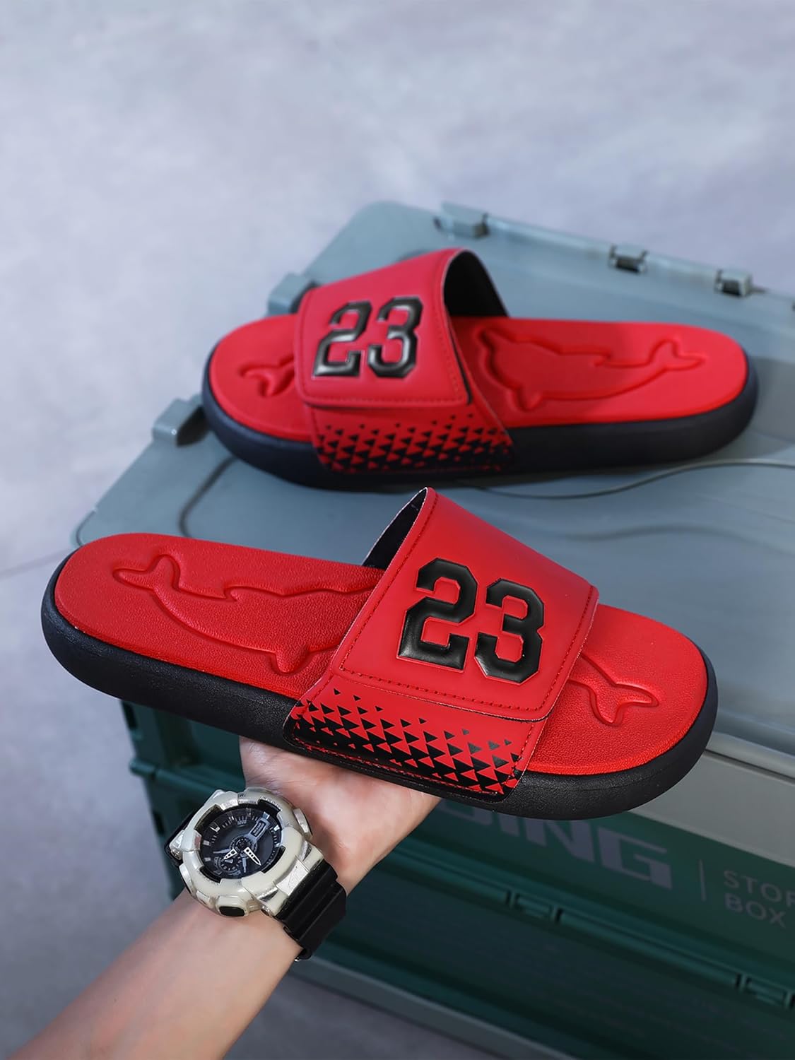 These men’s sport slide sandals are designed for ultimate comfort and versatility. The flexible midsole provides exceptional cushioning and support, making them perfect for casual wear or outdoor adventures. The sleek and stylish design features a bold logo that adds a touch of sporty flair. Crafted with durable materials, these sandals offer a secure and comfortable fit, allowing you to move freely without sacrificing style. Whether you’re hitting the beach, running errands, or simply lounging around, these slides are an ideal choice for effortless footwear that combines fashion and function seamlessly.