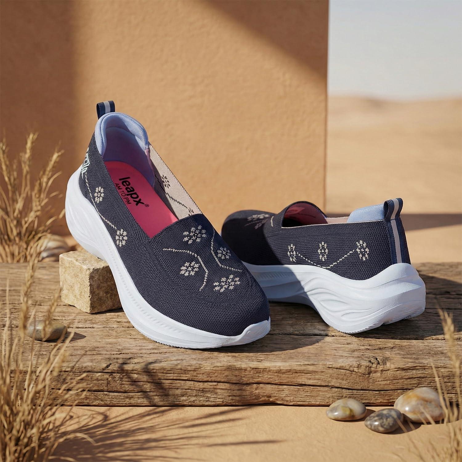 Liberty LEAP7X GLOWSTAR-E Walking Shoes for Women – Peach & Navy Blue Slip On Shoes – Memory Foam Insole – Lightweight & Fashionable