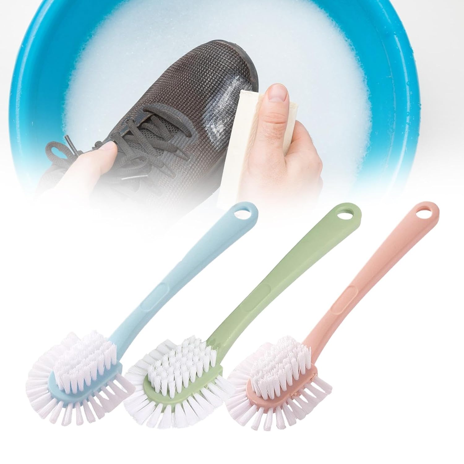 【Easy To Store】: Shoe washing brush has a storage hole at the end and can be wall mounted and hung to dry for easy storage.