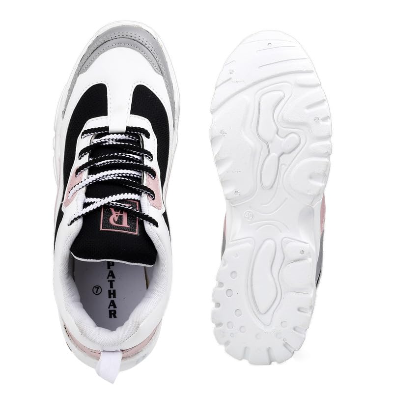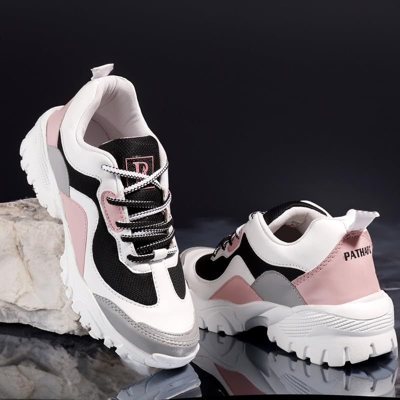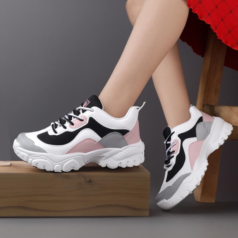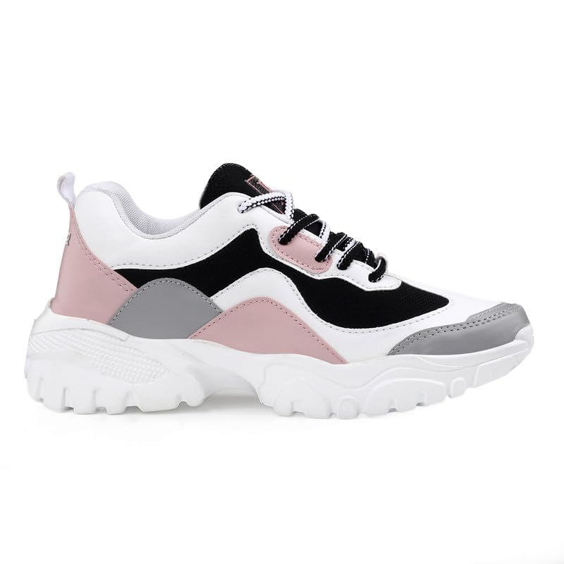 Step into style and comfort with these trendy women’s chunky sneakers. Designed with a sleek white base and pastel accents, these sneakers feature adorable heart and pencil graphics, adding a playful touch to your look. The thick cushioned sole ensures maximum comfort and durability, making them perfect for everyday wear, casual outings, or athleisure styling.